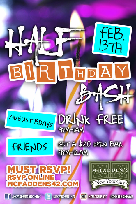 and friends get a $20 open bar from 9pm-12am plus 1/2 price drinks until 1am