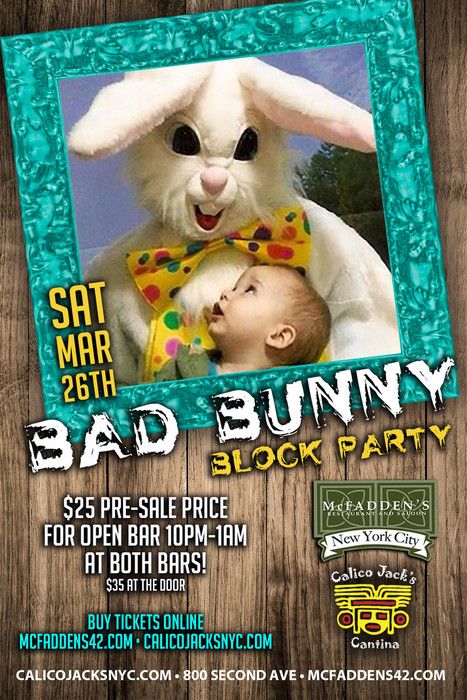 includes open bar from 10pm-1am at both McFadden’s & Calico Jacks.