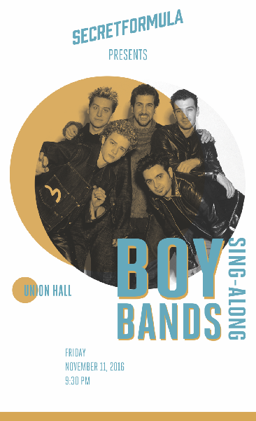 a judgment-free night of singing along to your favorite boy band music videos from the 80’s thru today (but mostly from the 90’s and early 00’s) with all the words on screen so the whole crowd can sing and dance along together