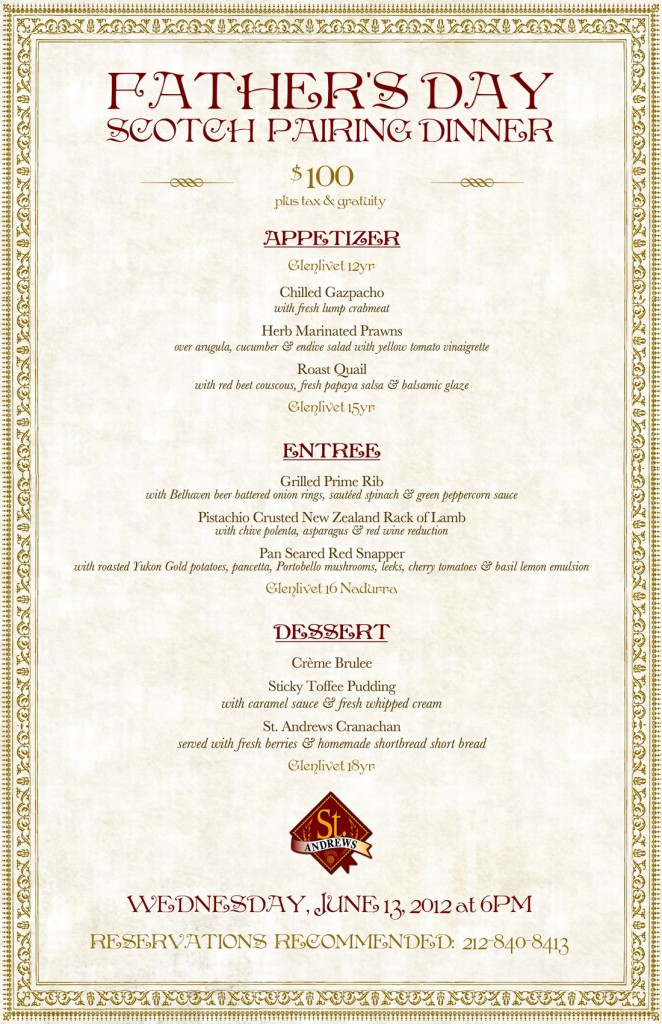 Fathers Day Scotch Pairing Dinner at St. Andrew’s