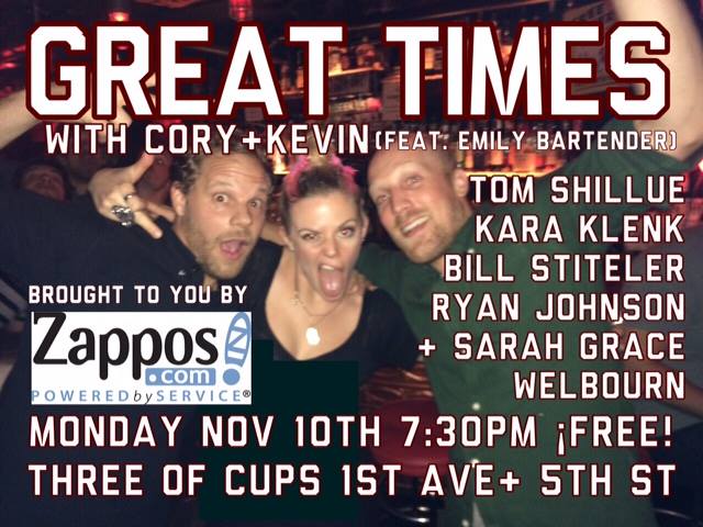 GREAT TIMES! is a free monthly stand up show hosted by Kevin Doyle + Cory Cavin every 2nd Monday of every month.
