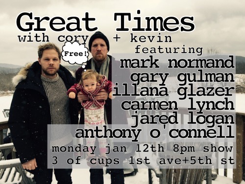 GREAT TIMES! is a free monthly stand up show hosted by Kevin Doyle + Cory Cavin every 2nd Monday of every month.