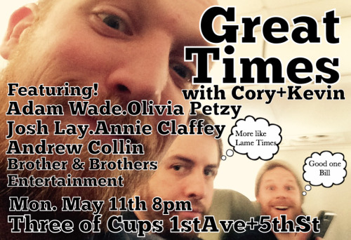 Great Times! is a free monthly stand up show hosted by Kevin Doyle + Cory Cavin on the 2nd Monday of every month.