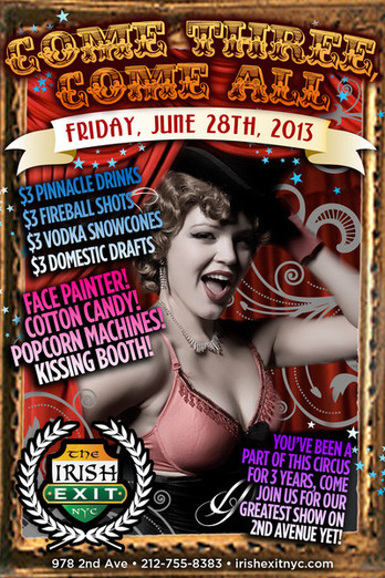 In honor of their third anniversary, The Irish Exit is throwing a party that’s going to be as wild as a circus (literally).