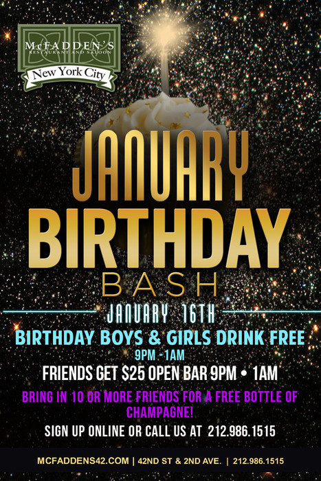 If you’re a January baby, you can get free drinks from 9pm-1am