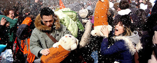 Cleanup: Please eliminate your use of feathers. As the pillow fight grows in size, so does the mess. By participating, you are pledging to clean up twice the mess you made