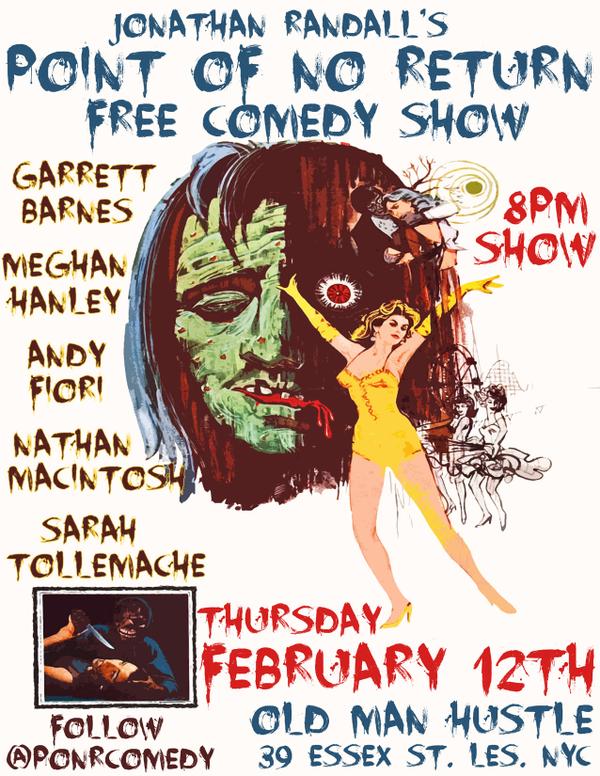 Every Thursday, comedian Jonathan Randall hosts the free comedy show Point Of No Return, featuring New York City’s finest comedians. Share in an intimate comedic experience where comedians are encouraged to experiment with new material.