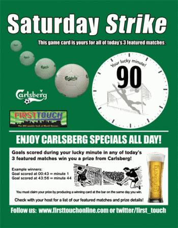 Game cards are given out with every purchase of Carlsberg. (some cards will also be randomly distributed by a Carlsberg/First Touch rep).