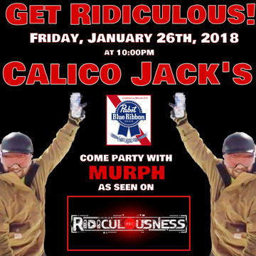 Calico Jack's Cantina 802 Second Ave., New York, NY, United StatesFriday, January 26, 2018 Get Ridiculous w/ Murph* Star of Ridiculousness! showing Murph's first appearance on "Ridiculousness" while he pours your drinks from 10pm to close Fiesta Friday drink specials 10pm at: Calico Jack’s Cantina 802 Second Ave. (between 42nd & 43rd St.) New York, NY (212) 557-4300 CalicoJacksNYC.com *Note: Murph is a bartender […]