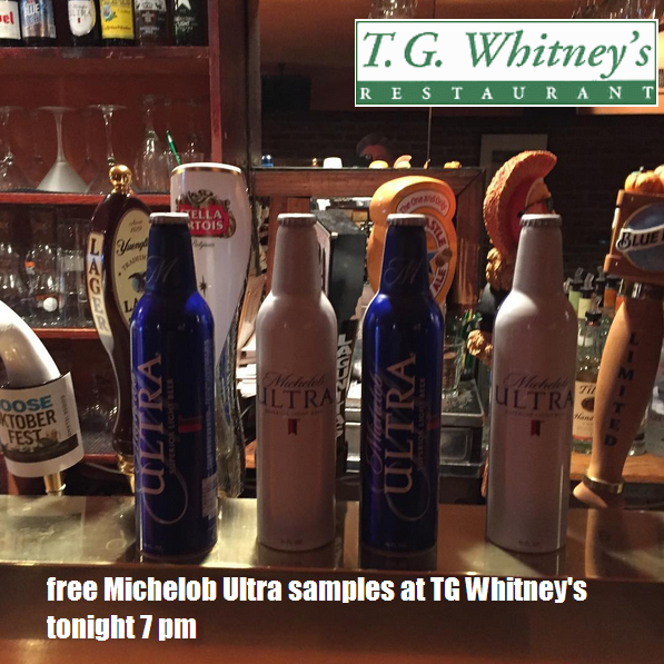 T.G. Whitney's 244 E. 53rd St., New York, NY, United StatesThursday, November 10, 2016 Michelob Ultra Promo free samples 7pm at: T.G. Whitney’s 244 E. 53rd St. (between Second & Third Ave.) New York, NY (212) 888-5772 TGWhitneysNYC.com