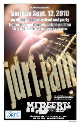 Thanks to facebook, I recently became re-acquainted with a classmate from (many) years ago, Michael Masciale. He is producing a benefit concert this Sunday to raise funds for the Juvenile Diabetes Research Foundation. The JDRF Jam will feature nine bands performing this Sunday, September 12, 2010 at Mr. Beery’s in Bethpage, NY.