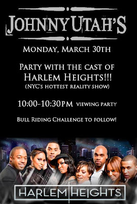 Members of the cast of Harlem Heights, BET’s reality show about 8 young professionals living in Harlem, will hosting a viewing partying tonight at Johnny Utah’s, with an episode of their show airing at 10pm.